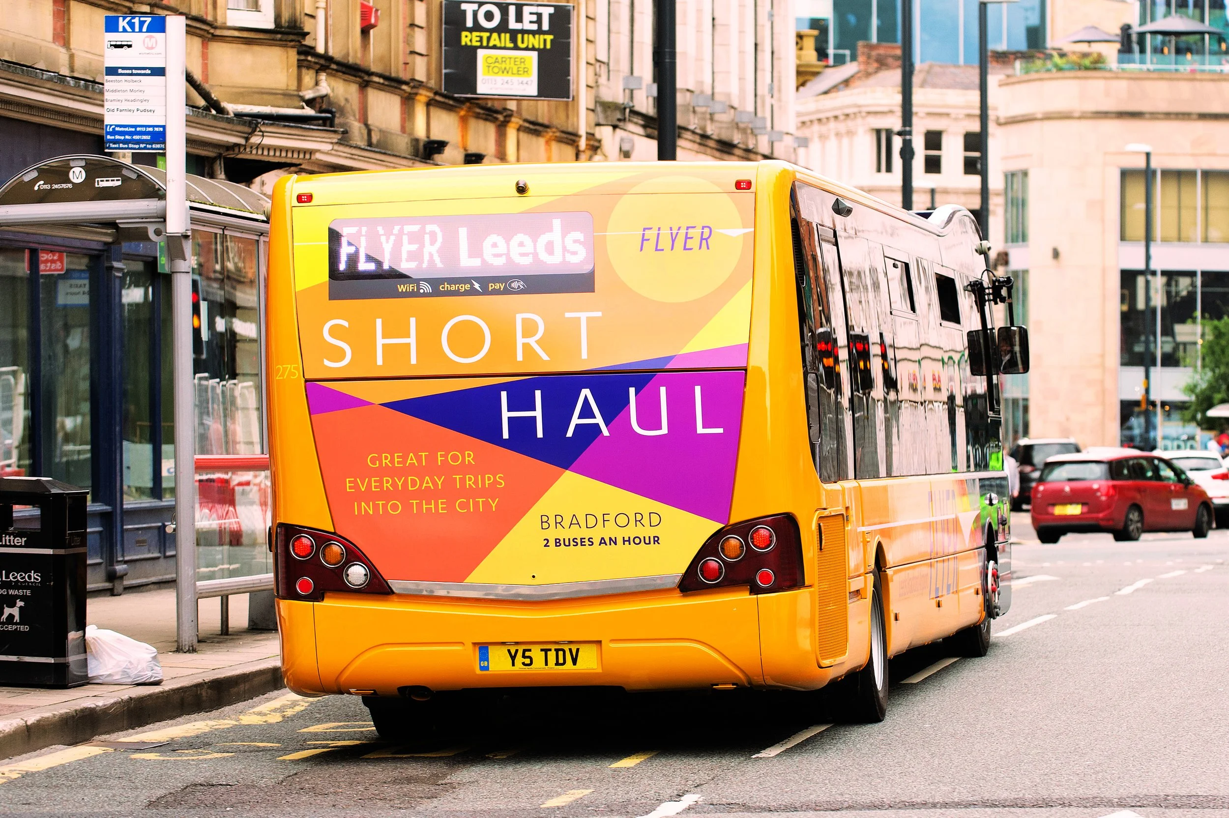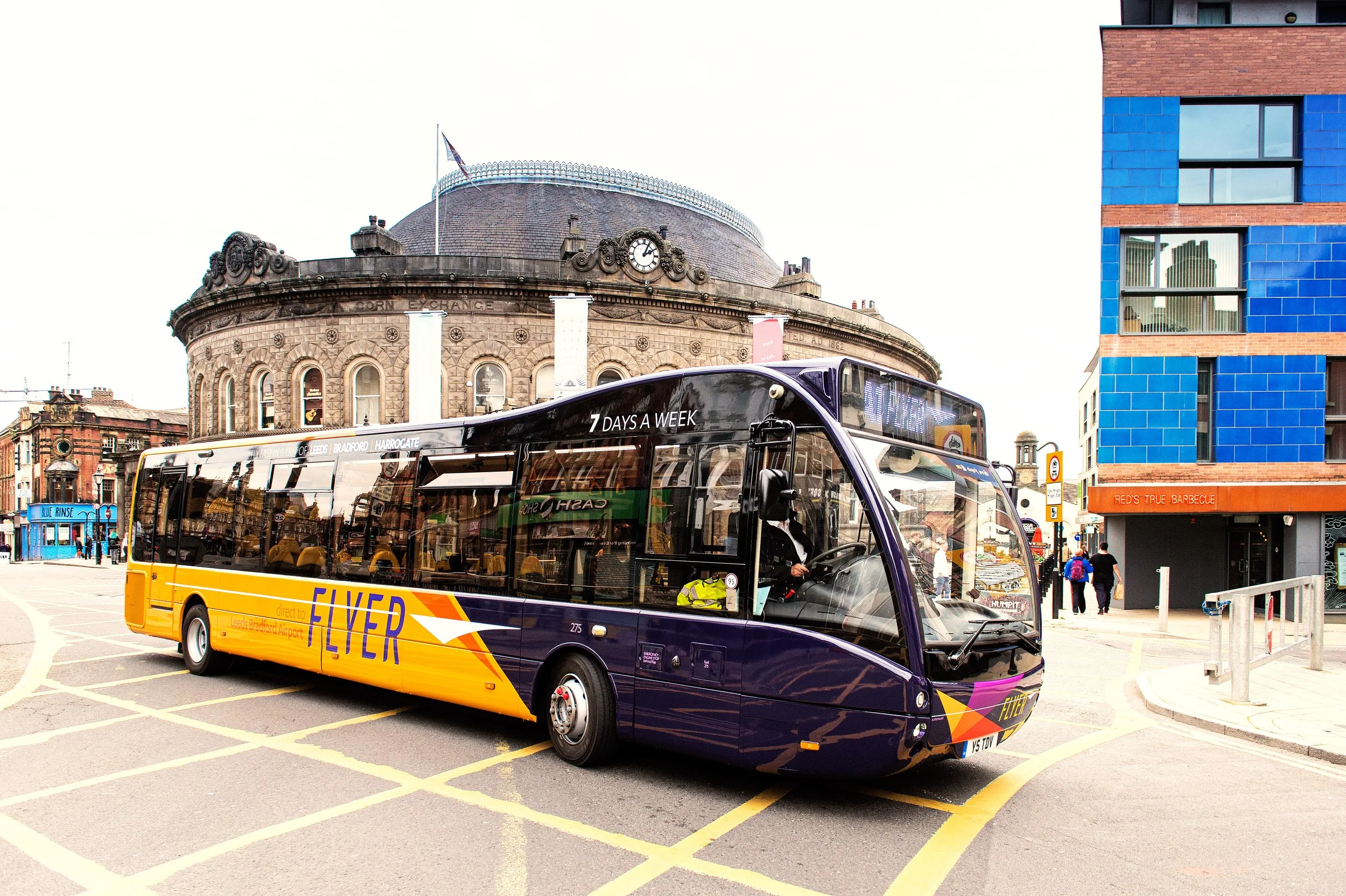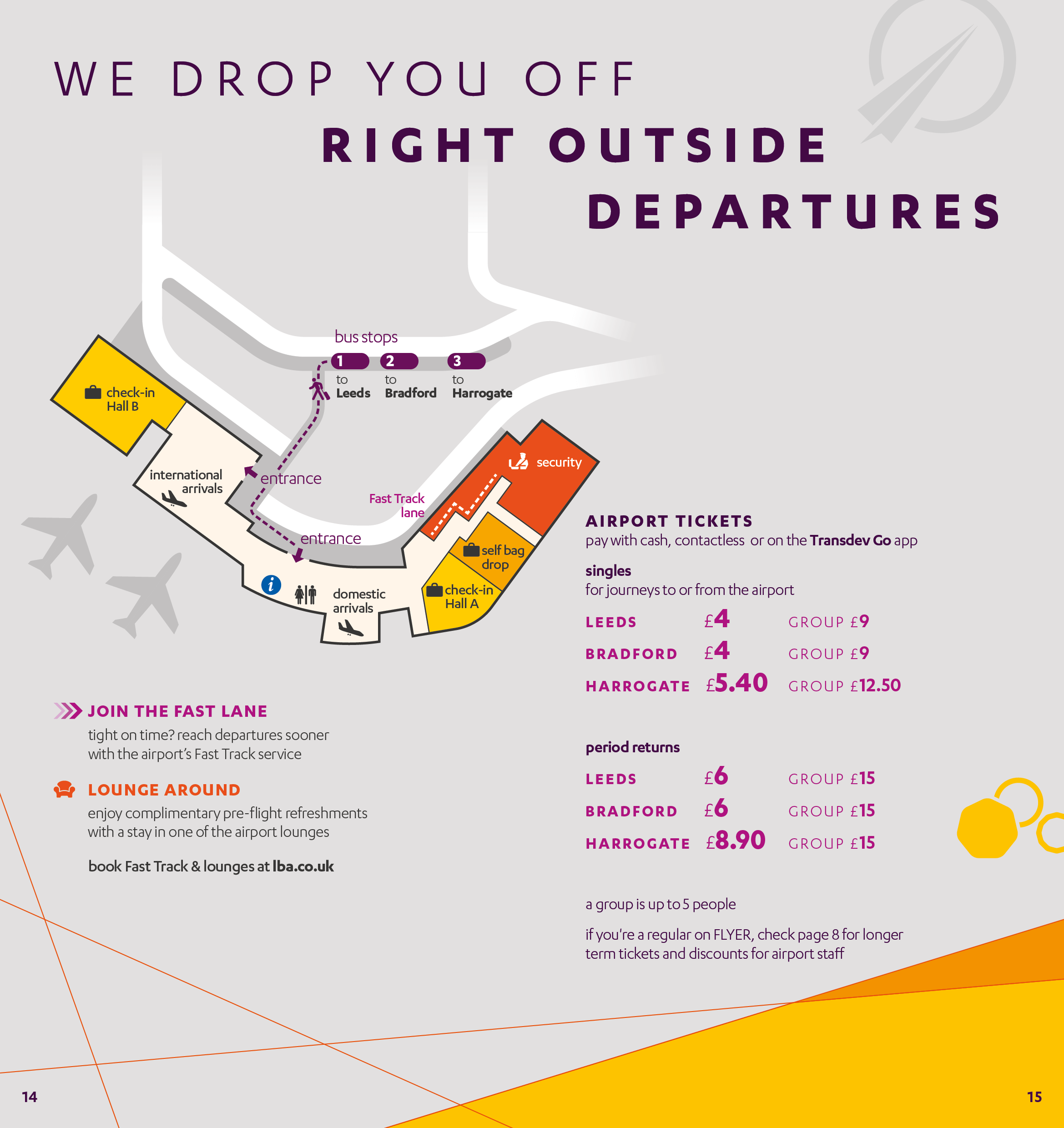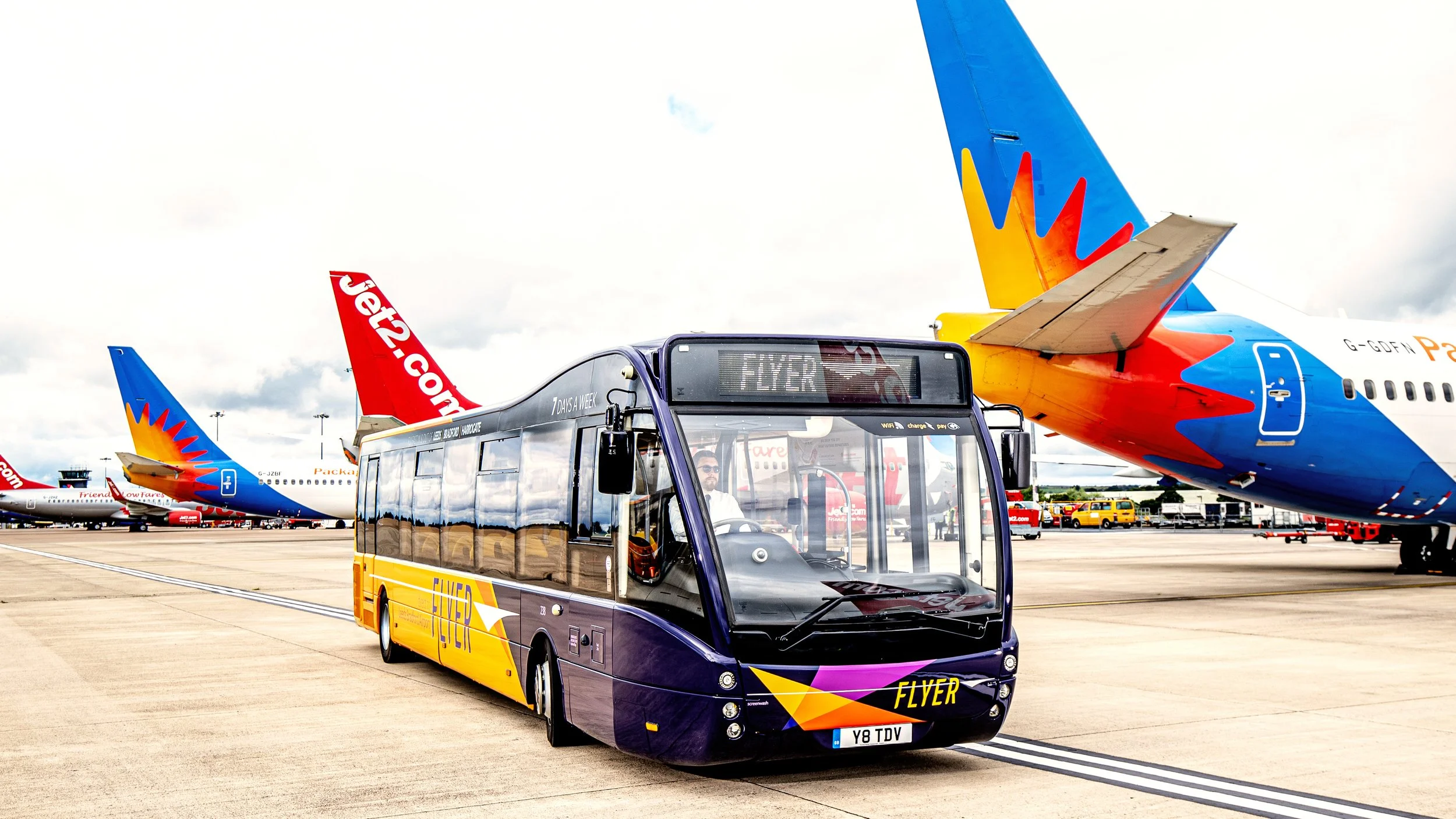 The bus station at Leeds Bradford Airport is the main focus of attention, both to signify where the buses go, and to introduce the service as an attractively priced, sustainable alternative to taxis and car hire.